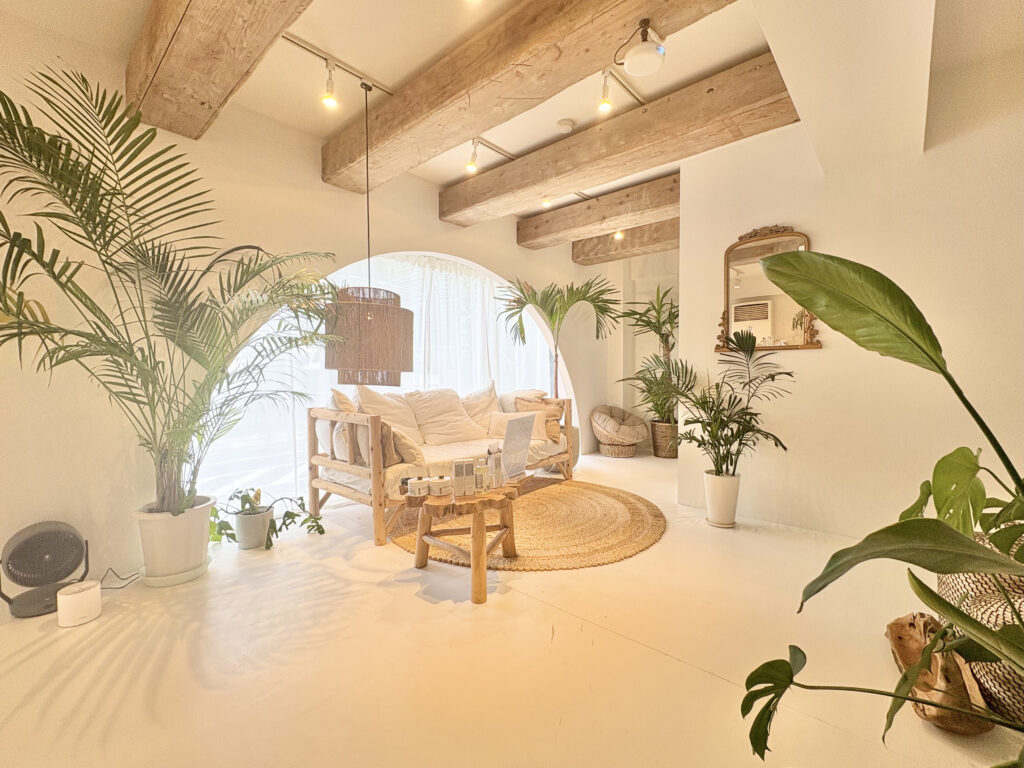 都会の喧騒を忘れさせる静けさと上質な空間で、美容施術・ネイル・スパ・撮影・展示・イベントなど多彩なシーンに対応。ウッド&ホワイトを基調に自然光が差し込む室内は、リゾート感と落ち着きを兼ね備え、訪れる人に心地よい時間を提供します。