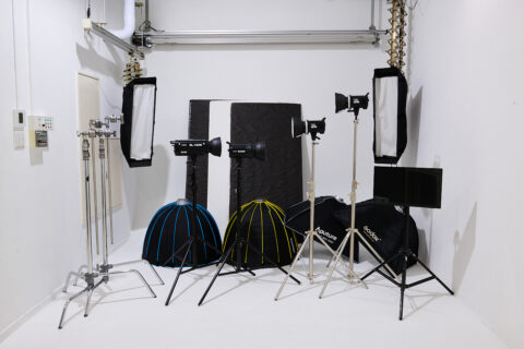 背景紙(4種類)やライティング装備も常設で、機材を持ち込まずとも本格的なポートレート・作品撮りに対応します。自然光の入る広さと備えられた照明で、広告・SNS・ビューティ系まで幅広く活用できます。